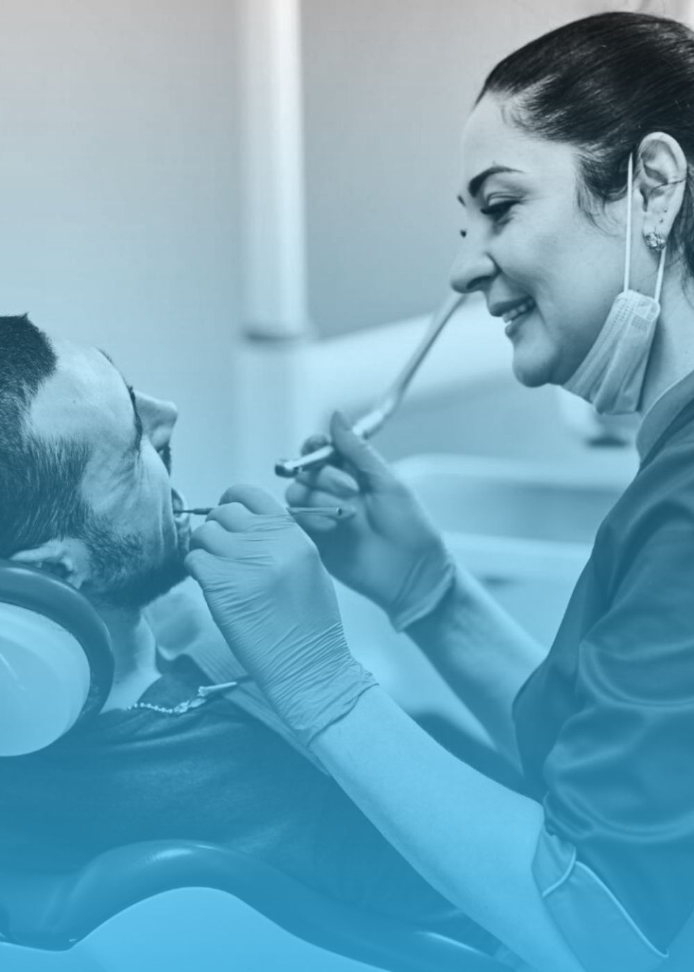 Nach der ersten Diagnose führt der Spezialist den erforderlichen Eingriff durch. Das Ergebnis ist ein zufriedener Patient mit einem schönen Lächeln.